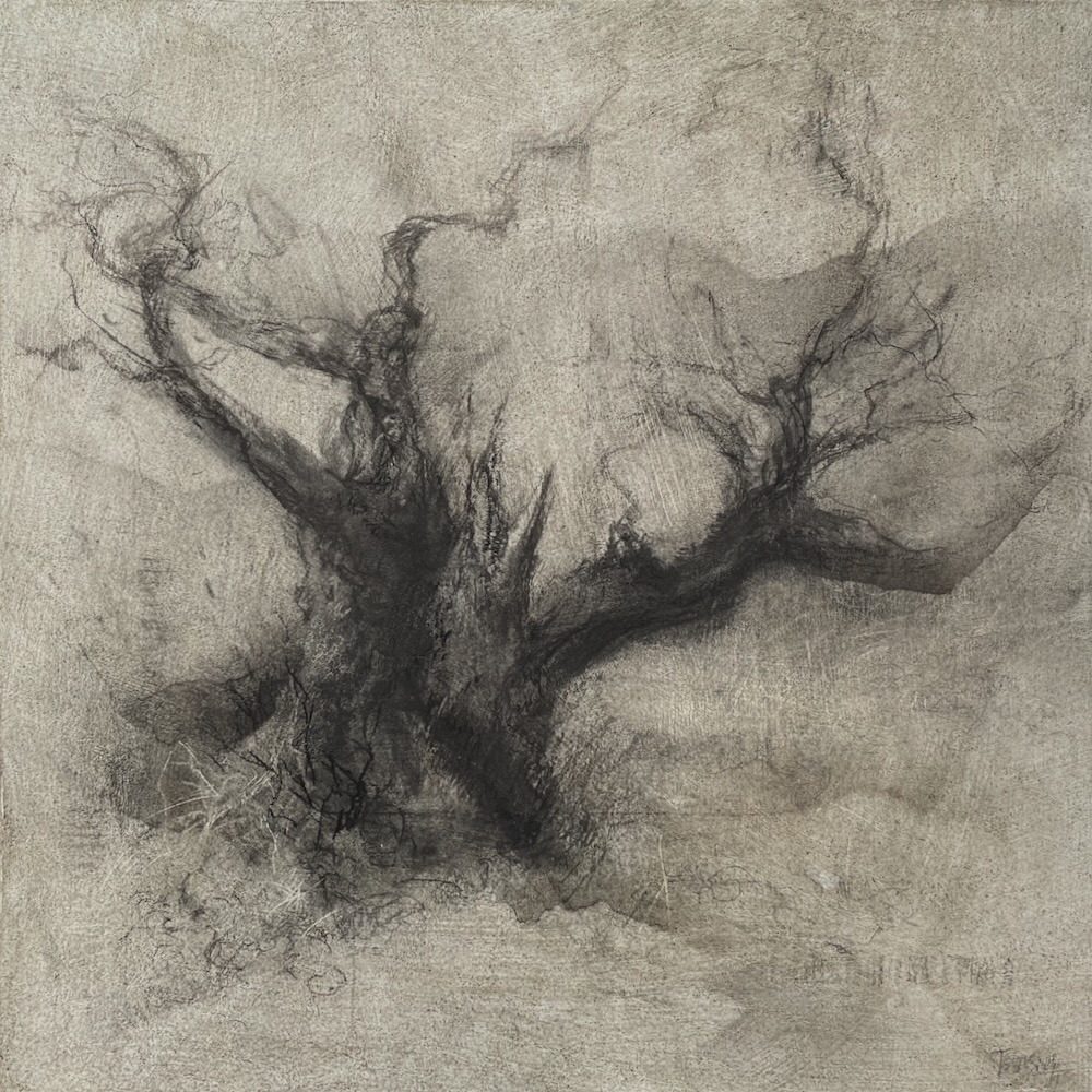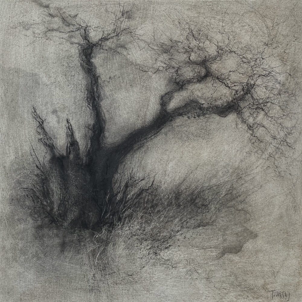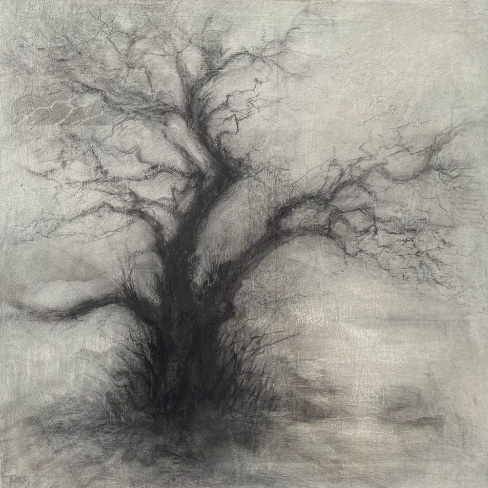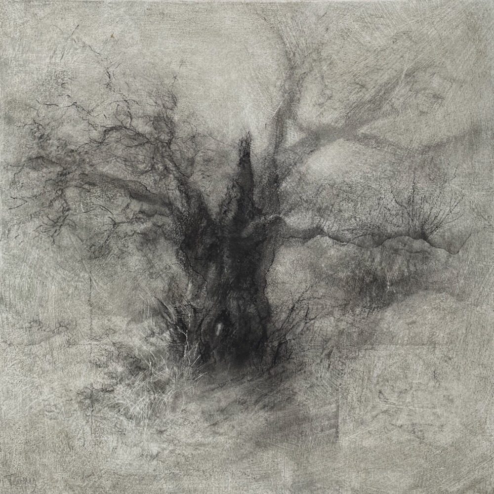 Places where wood meets water and we may meet otherness. Where alders root in the boggy earth, their unruly limbs reaching for the sky. Works in charcoal, graphite, slate, shale and mica, inspired by alder wood pasture sites around Scotland.