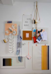 The exhibition of 9 Artist/Makers art work will also provide the additional opportunity for Artist/Makers to show supporting materials alongside their work, from sketchbooks to equipment, moodboard to research videos, books to work in progress, influence, inspiration, references to examples of materials, process etc.