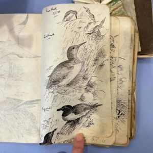 During the day, our SOC librarian Rosie, treated everyone to a talk and tour of the archives. The artists were then able to explore the artifacts and records in more detail. Some of the highlights, included beautiful sketchbooks from the 1940’s and 50’s by Donald Watson, as well as a collection of his childhood sketches.